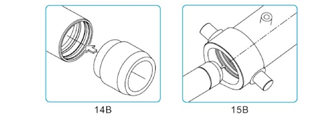 徹底檢查每節(jié)缸筒,充分潤滑油封套件和油封槽,給每節(jié)缸筒裝上新油封套件。