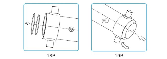 將導向帶置于缸筒尾部活塞槽內,加上足夠的潤滑油。將缸筒進一步推入外缸筒直到導向帶完全處于外缸筒中。