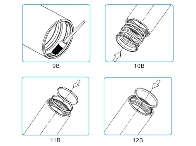 裝好一個缸筒后,將缸筒繼續(xù)向前推并將卡簧裝入上一節(jié)缸筒內壁上對應的卡簧